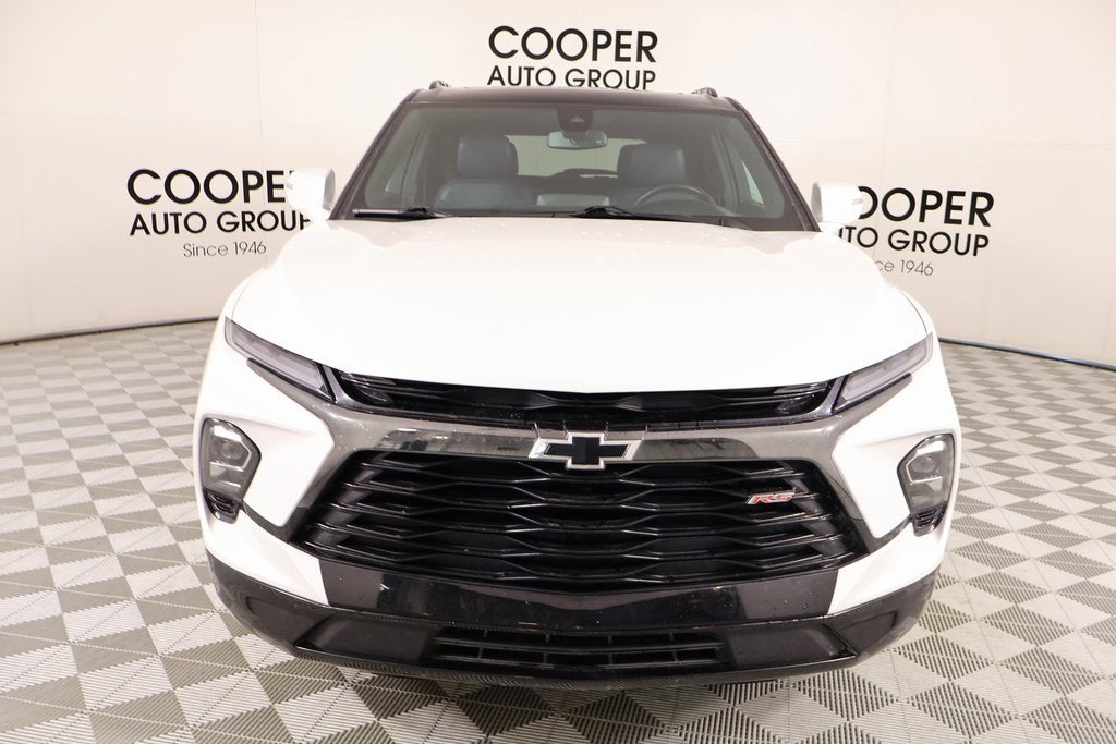 Joe Cooper Chevrolet-Cadillac of Shawnee (405) 275-0406 all qualifying units come CERTIFIED. Cooper Certification Program Details: Select Pre-owned vehicles have gone through a multi-point vehicle inspection and have been reconditioned to our highest standards. Every Cooper Certified comes with a 3-month 3,000-mile Limited Warranty.Clean Carfax,, Backup Camera,, One Owner,, Cooper Certified, Bose Premium 8-Speaker Audio System Feature, Enhanced Convenience Package, Heated Rear Outboard Seating Positions, Heated Steering Wheel, Memory Settings For Driver Seat & Exterior Mirrors, Power Tilt & Telescoping Steering Column, Preferred Equipment Group 1RS, Premium audio system: Chevrolet Infotainment 3 Premium, Rear Park Assist w/Audible Warning, Ventilated Driver & Front Passenger Seats.2023 Chevrolet Blazer RS Iridescent Pearl Tricoat 3.6L V6 SIDI 4D Sport Utility FWD 19/27 City/Highway MPG 19/27 City/Highway MPG 9-Speed Automatic with OverdriveClean CARFAX.2023 Chevrolet Blazer Enhanced Convenience Package (Heated Rear Outboard Seating Positions, Memory Settings For Driver Seat & Exterior Mirrors, Power Tilt & Telescoping Steering Column, and Ventilated Driver & Front Passenger Seats), Preferred Equipment Group 1RS (Heated Steering Wheel and Rear Park Assist w/Audible Warning), Cooper Certified Certified, Bose Premium 8-Speaker Audio System Feature, Premium audio system: Chevrolet Infotainment 3 Premium, 3.49 Final Drive Axle Ratio, 4-Wheel Disc Brakes, 6-Way Power Front Passenger Seat Adjuster, 8 Speakers, 8-Way Power Driver Seat Adjuster, ABS brakes, Air Conditioning, Alloy wheels, AM/FM radio: SiriusXM with 360L, Apple CarPlay/Android Auto, Auto High-beam Headlights, Auto-dimming door mirrors, Auto-dimming Rear-View mirror, Automatic temperature control, Black 2-Tone Roof, Brake assist, Bumpers: body-color, Child-Seat-Sensing Airbag, Compass, Delay-off headlights, Driver door bin, Driver vanity mirror, Dual front impact airbags, Dual front side impact airbags, Electronic Stability Control, Emergency communication system: OnStar and Chevrolet connected services capable, Four wheel independent suspension, Front anti-roll bar, Front Bucket Seats, Front Center Armrest, Front dual zone A/C, Front reading lights, Fully automatic headlights, Garage door transmitter, Heated door mirrors, Heated Driver & Front Passenger Seats, Heated front seats, Heated steering wheel, Illuminated entry, Knee airbag, Leather Shift Knob, Low tire pressure warning, Navigation System, Occupant sensing airbag, Outside temperature display, Overhead airbag, Overhead console, Panic alarm, Passenger door bin, Passenger vanity mirror, Perforated Leather-Appointed Seat Trim, Power door mirrors, Power Driver Lumbar Control, Power driver seat, Power Liftgate, Power Panoramic Tilt-Sliding Sunroof, Power passenger seat, Power steering, Power windows, Radio data system, Radio: Chevrolet Infotainment 3 Premium System, Rear anti-roll bar, Rear reading lights, Rear seat center armrest, Rear window defroster, Rear window wiper, Remote keyless entry, Ride & Handling Suspension, Security system, SiriusXM w/360L, Speed control, Speed-sensing steering, Split folding rear seat, Spoiler, Steering wheel mounted audio controls, Tachometer, Telescoping steering wheel, Tilt steering wheel, Traction control, Trip computer, Turn signal indicator mirrors, Variably intermittent wipers, Voltmeter, Wheels: 20 Technical Gray Aluminum, and Wheels: 21 High Gloss Black w/Machined Face.
