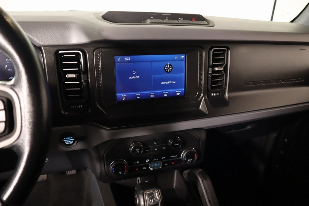 THIS VEHICLE COMES EQUIPPED WITH THE FOLLOWING OPTIONS AND FEATURES: Equipment Group 222A Mid Package (2-Door Intelligent Access w/Lock/Unlock, Ambient Footwell Lighting, Auto-Dimming Interior Rear-View Mirror, Connected Navigation, Dr & Pass Illuminated Sliding Visor Vanity Mirrors, Dual-Zone Electronic Automatic Temperature Control, Enhanced Voice Recognition, Front Row Heated Seats, Power Outlet - Back Side of Center Floor Console, Rear Parking Sensors, and Remote Start System), Auxiliary Switches, Electronic Stability Control, Exterior Parking Camera Rear, Keyless Entry Keypad, SYNC 4, 4-Wheel Disc Brakes, 4.27 Final Drive Ratio w/Rear Locking Differential, 4.46 Axle Ratio, 7 Speakers, ABS brakes, Air Conditioning, Alloy wheels, AM/FM radio: SiriusXM with 360L, AM/FM Stereo, Auto High-beam Headlights, Brake assist, Carbonized Gray Molded-In-Color Hard Top, Compass, Delay-off headlights, Driver door bin, Driver vanity mirror, Dual front impact airbags, Dual front side impact airbags, Emergency communication system: 911 Assist, Front anti-roll bar, Front Bucket Seats, Front Center Armrest, Front fog lights, Front reading lights, Front Row Top Panels Storage Bag, Front wheel independent suspension, Fully automatic headlights, Heated door mirrors, Illuminated entry, Integrated roll-over protection, Leather Shift Knob, LED Signature Lighting, Low tire pressure warning, Marine Grade Vinyl Bucket Seats, Navigation Removal, Occupant sensing airbag, Outside temperature display, Overhead airbag, Overhead console, Panic alarm, Passenger door bin, Passenger vanity mirror, Powder Coated Tube Step, Power door mirrors, Power steering, Power windows, Radio data system, Radio: 6 Speakers w/Subwoofer Delete, Rear-Window Defroster & Washer, Remote keyless entry, Security system, SiriusXM Radio w/360L, Speed control, Split folding rear seat, Steering wheel mounted audio controls, Tachometer, Telescoping steering wheel, Tilt steering wheel, Traction control, Trip computer, Variably intermittent wipers, and Wheels: 17 Carbonized Gray-Painted Aluminum.