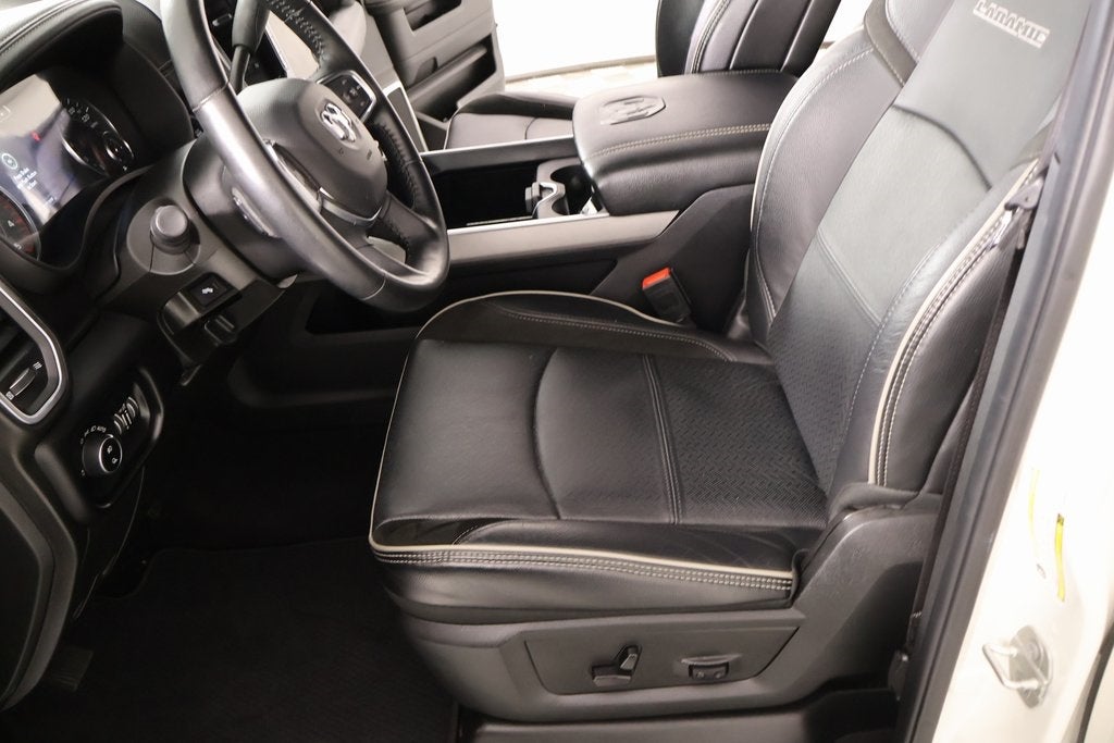 THIS VEHICLE COMES EQUIPPED WITH THE FOLLOWING OPTIONS AND FEATURES: Laramie Level B Equipment Group (12" Touchscreen Display, 17 Speaker harman/kardon Premium Sound, 2nd Row In Floor Storage Bins, 4G LTE Wi-Fi Hot Spot, Alexa Built-In, Apple CarPlay, Auto Adjust In Reverse Exterior Mirrors, Auto Dim Exterior Mirror, Auto High Beam Headlamp Control, Auto Power-Folding Mirrors, Auto-Dimming Exterior Passenger Mirror, Blind Spot & Cross Path Detection, Center Hub, Chrome Exterior Mirrors, Connected Travel & Traffic Services, Connectivity - US/Canada, Disassociated Touchscreen Display, Exterior Mirrors Courtesy Lamps, Exterior Mirrors w/Heating Element, Exterior Mirrors w/Memory, Exterior Mirrors w/Supplemental Signals, Foam Bottle Insert (Door Trim Panel), For Details, Visit DriveUconnect.com, For More Info, Call 800-643-2112, Forward & Reverse Utility Lights, Front LED Fog Lamps, Global Telematics Box Module (TBM), Google Android Auto, GPS Antenna Input, GPS Navigation, HD Radio, Heated Second Row Seats, Integrated Voice Command w/Bluetooth®, LED Reflector Headlamps, LED Tail Lamps, Mirror Running Lights, Off-Road Information Pages, ParkSense Front/Rear Park Assist System, Power Adjust Mirrors, Power Adjustable Convex Aux Mirrors, Power Adjustable Pedals w/Memory, Power Heated Fold Telescopic Mirrors w/Memory, Power Telescoping Mirrors, Radio: Uconnect 5 Nav w/12.0" Display, Rain Sensitive Windshield Wipers, Rear Power Sliding Window, Rear Window Defroster, Remote Tailgate Release, Selectable Tire Fill Alert, SiriusXM Radio Service, SiriusXM w/360L, Trailer Tow Pages, and Wheels: 18" x 8.0" Polished Aluminum), Quick Order Package 2HH Laramie, Sport Appearance Package (20" x 8.0" Polished Aluminum Wheels, Black Interior Accents, Body Color Grille Surround, Sport Decal, and Sport Performance Hood), Towing Technology Group (CTR Stop Lamp w/Cargo View Camera, Surround View Camera System, and Trailer Reverse Guidance), Cooper Certified Certified, 10 Speakers, 115V Auxiliary Rear Power Outlet, 2 Way Rear Headrest Seat, 220 Amp Alternator, 3.73 Axle Ratio, 4 Way Front Headrests, 4-Wheel Disc Brakes, 5th Wheel/Gooseneck Towing Prep Group, ABS brakes, Active Noise Control System, Air Conditioning, Alloy wheels, AM/FM radio: SiriusXM with 360L, Anti-Spin Differential Rear Axle, Apple CarPlay/Android Auto, Automatic temperature control, Brake assist, Bumpers: body-color, Clearance Lamps, Compass, Delay-off headlights, Driver door bin, Driver vanity mirror, Dual front impact airbags, Dual front side impact airbags, Electronic Stability Control, Electronically Controlled Throttle, Front anti-roll bar, Front Center Armrest w/Storage, Front dual zone A/C, Front reading lights, Front Seat Back Map Pockets, Fully automatic headlights, Garage door transmitter, Heated door mirrors, Heated Front Seats, Heated front seats, Heated Steering Wheel, Heated steering wheel, Illuminated entry, Leather steering wheel, Leather Trim 40/20/40 Bench Seat, Low tire pressure warning, Manufacturer's Statement of Origin, MOPAR Spray In Bedliner, Navigation System, Occupant sensing airbag, Outside temperature display, Overhead airbag, Overhead console, Panic alarm, ParkView Rear Back-Up Camera, Passenger door bin, Passenger vanity mirror, Power 2-Way Driver Lumbar Adjust, Power 2-Way Passenger Lumbar Adjust, Power Adjust 8-Way Driver Seat, Power Adjust 8-Way Front Passenger Seat, Power door mirrors, Power driver seat, Power passenger seat, Power steering, Power windows, Radio data system, Rear 60/40 Folding Seat, Rear anti-roll bar, Rear reading lights, Rear seat center armrest, Rear step bumper, Rear window defroster, Remote keyless entry, Security system, Speed control, Split folding rear seat, Steering wheel mounted audio controls, Tachometer, Tilt steering wheel, Tip Start, Tow Hooks, Traction control, Trip computer, Turn signal indicator
